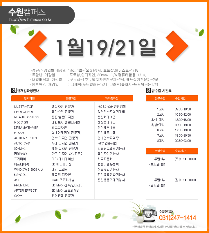 13년 1월 개강일정